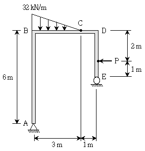 그림과 같은 하중을 받는 라멘구조에서 C점의 모멘트가 0이 되기 위한 집중하중 P[kN]는? (단, 라멘구조의 자중은 무시한다)