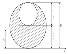 그림과 같이 직경 D인 원에서 직경 D/2 인 원을 뺀 나머지 부분의 x축에서 도심까지의 거리(y0)는?