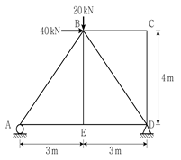 그림과 같은 트러스 구조물에서 부재 BC의 부재력 크기[kN]는? (단, 자중은 무시한다)