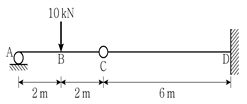 그림과 같이 C점에 내부힌지가 있는 보에서 지점 D에 발생하는 휨모멘트의 크기[kNㆍm]는? (단, 자중은 무시한다)