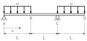 그림과 같은 내민보에서 휨모멘트가 0이 되는 위치까지의 수평거리 x로 옳은 것은? (단, 구조물의 자중은 무시한다)