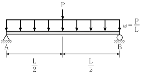 그림과 같은 단순보에 집중하중 P와 분포하중 ω=P/L 가 작용할 경우, A점의 처짐각은