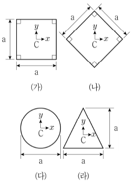 그림과 같이 도형의 도심 C의 축에 대한 탄성단면계수의 크기가 큰 것부터 바르게 나열한 것은?