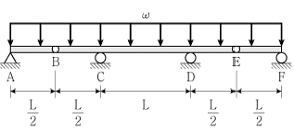그림과 같이 내부 힌지가 있는 보에서 C점의 수직반력은? (단, 구조물의 자중은 무시한다)