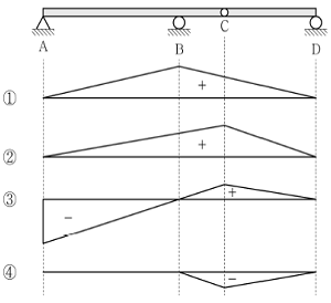 그림과 같이 내부 힌지를 가지고 있는 게르버보에서 B점의 정성적인 휨모멘트의 영향선은?