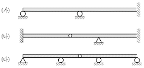그림과 같은 보 (가), (나), (다)의 부정정 차수를 모두 합한 차수는?