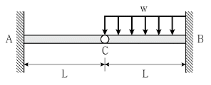 그림과 같이 C점에 내부힌지가 있는 보의 지점 A와 B에서 수직반력의 비 RA/RB는? (단, 보의 휨강성 EI는 일정하고, 자중은 무시한다)