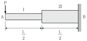 그림과 같은 변단면 캔틸레버보에서 A점의 수직처짐의 크기는? (단, 모든 부재의 탄성계수 E는 일정하고, 자중은 무시한다)