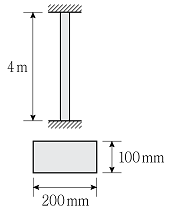 그림과 같이 양단이 고정지지된 직사각형 단면을 갖는 기둥의 최소 임계하중의 크기[kN]는? (단, 기둥의 탄성계수 E=210GPa, π2은 10으로 계산하며, 자중은 무시한다)
