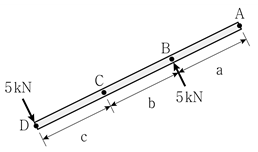 그림과 같이 크기가 같고 방향이 반대인 우력이 작용할 때, 옳지 않은 설명은? (단, a, b, c는 0보다 큰 상수이다)