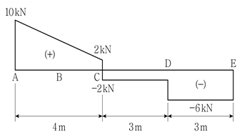 그림은 단순보의 전단력도(S.F.D.)를 나타낸 것이다. 단순보에 발생하는 최대휨모멘트의 크기[kNㆍm]는?