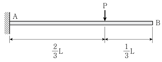 그림과 같이 하중을 받는 캔틸레버보에서 B점의 수직변위의 크기는