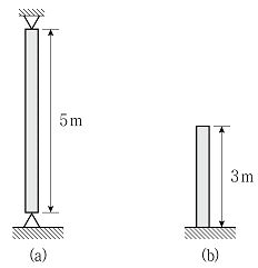 그림 (a)와 같이 양단 힌지로 지지된 길이 5m 기둥의 오일러 좌굴하중이 360kN일 때, 그림 (b)와 같이 일단 고정 타단 자유인 길이 3m 기둥의 오일러 좌굴하중[kN]은? (단, 두 기둥의 단면은 동일하고, 탄성계수는 같으며, 구조물의 자중은 무시한다)