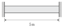 그림과 같이 양단이 고정된 수평부재에서 부재의 온도가 △T만큼 상승하여 40MPa의 축방향 압축응력이 발생하였다. 상승한 온도 △T[℃]는? (단, 부재의 열팽창계수 α=1.0×10-5/℃, 탄성계수 E=200GPa이며, 구조물의 좌굴 및 자중은 무시한다)