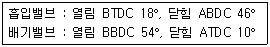보기의 조건에서 밸브 오버랩 각도는 몇 도 인가?