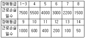 어떤 제철공장에서 40명의 종업원이 1년간 작업하는 가운데 신체장애 등급 11급 10명, 1급 1명이 발생하였다. 재해 강도율은 약 얼마인가? (단, 1일 8시간 작업하고, 년 300일 근무한다.)