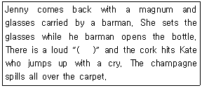 다음 ( )안에 알맞은 단어와 아래의 상황 후 Jenny가 Kate에게 할 말의 연결로 가장 적합한 것은?