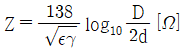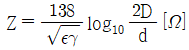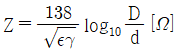 동축케이블의 특성 임피던스 Z 는? (단, 동축케이블의 외부도체의 내경 : D, 동축케이블의 내부도체의 외경 : d, 비유전율 : εγ)