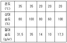 작업장의 습도 조정을 하기 위해 작업장의 온도조건은 35℃ 80% RH로 나타내고 있었다.이 작업장을 20℃ 60% RH로 조정했을 때 결로된 수분량은 1m3 당 얼마인가? (단, 공기선도에 다른 수치는 아래와 같다.)