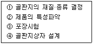다음은 일반적인 골판지 상자의 설계과정을 나타낸 것이다. 순서가 바르게 연결된 것은?