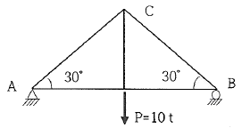 그림과 같은 트러스구조물에서 AC의 부재력(t)은?