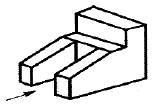 화살표 방향에서 본 투상도가 정면도이면 평면도로 옳은 것은?