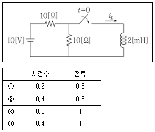 <보기>와 같이 t=0에서 회로의 스위치를 닫을 때, 회로의 시정수[ms]와 인덕터에 흐르는 전류 iL의 최종값[A]은?