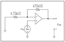 <보기>의 연산증폭기 회로에 5sin(3t)mV 입력이 주어 졌을 때, 출력 신호의 진폭[mV]은? (단, 연산증폭기는 이상적이다.)