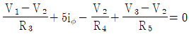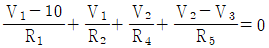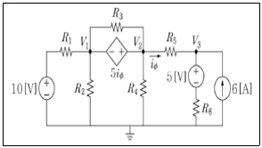 <보기>의 회로를 노드전압법(Node-Voltage Method)으로 회로해석할 때, 생성할 수 있는 식으로 가장 옳지 않은 것은?