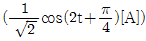 교류전원 vs(t)=2cos2t[V]가 직렬 RL회로에 연결되어 있다. R=2[Ω], L=1[H]일 때, 회로에 흐르는 전류 i(t)의 값[A]은?