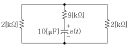 그림의 회로에서 v(t=0)=V0일 때, 시간 t에서의 v(t)의 값[V]은?