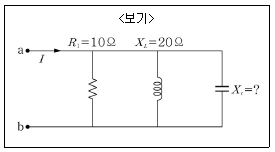 <보기>와 같은 RLC병렬회로에서 v=80√2sin(wt)[V]인 교류를 a, b 단자에 가할 때, 전류 I의 실효값이 10[A]라면, Xc의 값은?