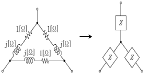 <보기>의 회로와 같이 △결선을 Y결선으로 환산하였을 때, Z의 값[Ω]은?