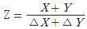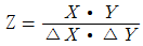 도곽선의 보정계수 계산식으로 옳은 것은? (단, Z는 보정계수, X는 도곽선 종선길이, Y는 도곽선 횡선길이, △X는 신축된 도곽선 종선길이의 합 ÷2, △Y는 신축된 도곽선 횡선길이의 합 ÷2)