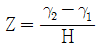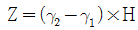 연돌내의 배기가스 비중량 γ1, 외기 비중량 γ2, 연돌의 높이가 H일 때 연돌의 이론 통풍력(Z)를 구하는 식은?
