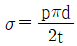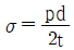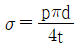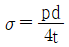 배관의 축 방향 응력 σ(kPa)을 나타낸 식은? (단, d : 배관의 내경(mm), p : 배관의 내압(kPa), t : 배관의 두께(mm) 이며, t는 충분히 얇다.)