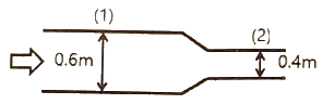 지름이 각각 0.6m, 0.4m인 파이프가 있다. (1)에서의 유속이 8m/s이면 (2)에서의 유속(m/s)은 얼마인가?