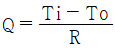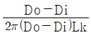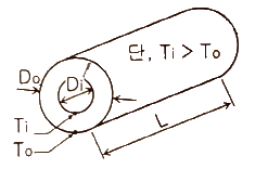 그림과 같이 내경과 외경이 Di, Do일 때, 온도는 각각 Ti, To, 관 길이가 L 인 중공 원관이 있다. 관 재질에 대한 열전도율을 k라 할 때, 열저항 R을 나타낸 식으로 옳은 것은? (단, 전열량(W)은