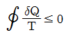 열역학 2법칙과 관련하여 가역 또는 비가역 사이클 과정 중 항상 성립하는 것은? (단, Q는 시스템에 출입하는 열량이고, T는 절대온도이다.)
