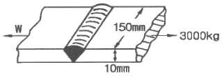 그림과 같이 폭 150mm, 두께 10mm의 맞대기 용접이음에 작용하는 인장응력은?