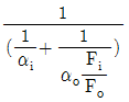 2중관 열교환기에 있어서 열관류율( )의 근사식은? (단, Fi : 내관 내면적, Fo : 내관 외면적, αi : 내관 내면과 유체 사이의 경막계수, αo : 내관 외면과 유체 사이의 경막계수,전열계산은 내관 외면 기준일 때이다.)