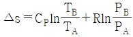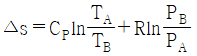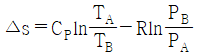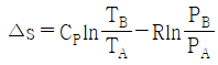 이상기체가 A상태(TA, PA)에서 B상태(TB, PB)로 변화하였다. 정압비열 CP가 일정할 경우 비엔트로피의 변화 △s를 옳게 나타낸 것은?
