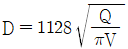 파이프 내경 D(mm)를 유량 Q(m3/s)와 평균속도 C(m/s)로 표시한 식으로 옳은 것은?