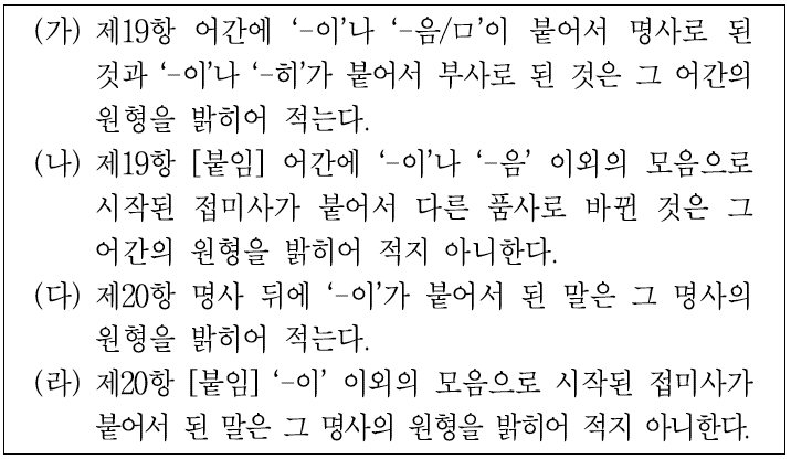 다음 한글 맞춤법 규정의 예로 옳지 않은 것은?