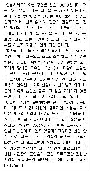강연자의 말하기 방식에 대한 설명으로 적절하지 않은 것은?