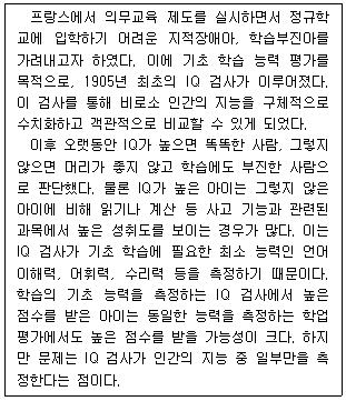 IQ 검사가 만들어지기 전에는 인간의 지능을 수치로 비교할 수 없었다.