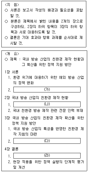 <지침>에 따라 <개요>를 작성할 때 (가)~(라)에 들어갈 내용으로 적절하지 않은 것은?