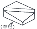 그림과 같은 입체도에서 화살표가 정면일 경우 제3각 정투상도로 올바르게 나타낸 것은?