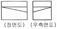 그림과 같은 정면도와 우측면도에 가장 적합한 평면도는?(문제 오류로 실제 시험에서는 3번으로 정답이 발표되었지만 확정답안 발표시 2, 3번이 정답 처리 되었습니다. 여기서는 3번을 정답 처리 합니다.)
