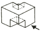 그림의 입체도에서 화살표 방향을 정면으로 하여 제3각법으로 그린 정투상도는?